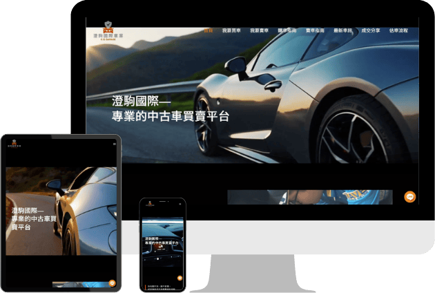 本網頁設計以沉穩的深黑色與亮橘色作為核心視覺,營造出車業市場所需的專業感、力量感與值得信賴的企業形象。視覺上運用了大量的高品質名車實境攝影與沈浸式動態影像,搭配俐落的網格佈局與高對比文字層級,強化了品牌作為專業買賣平台的權威感。版面配置採取直覺的一站式導覽結構,將最新在庫車輛、買車估價流程與成功案例分享以洗鍊的模組化形式呈現,並透過簡潔的線上估價系統,為用戶打造一個高效、通透且具備尊榮感的數位賞車與諮詢體驗。